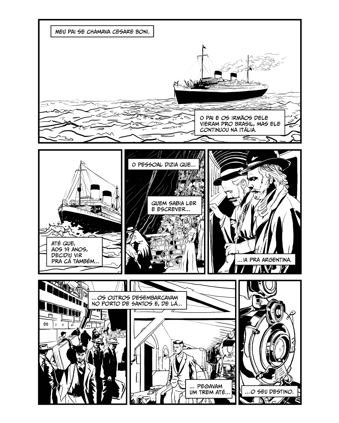 O fotógrafo imigrante conta um pouco da trajetória do fotógrafo Cesare Boni, imigrante italiano responsável por praticamente todos os registros visuais de Cerquilho-SP da primeira metade do século XX. A obra é um híbrido entre quadrinhos e música, cujo diálogo acontece por meio da Realidade Aumentada. Em cada vinheta reside um trecho de uma música composta por mim onde busquei interpretar a HQ.
